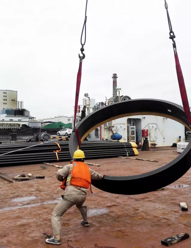 正在吊裝的管材